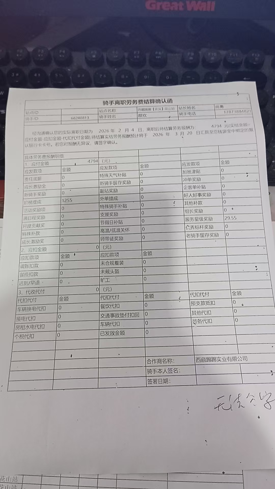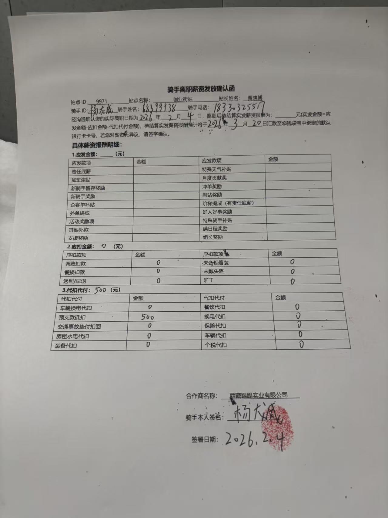 | 23 | 67940018 | 罗超 | 西藏踢踢【武汉】长丰站 | 1 | 2026-02-09 07:56 | |
